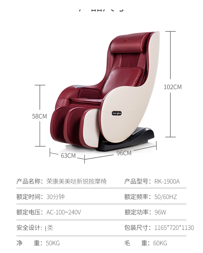 荣康RK-1900A电动按摩椅(棕、红)